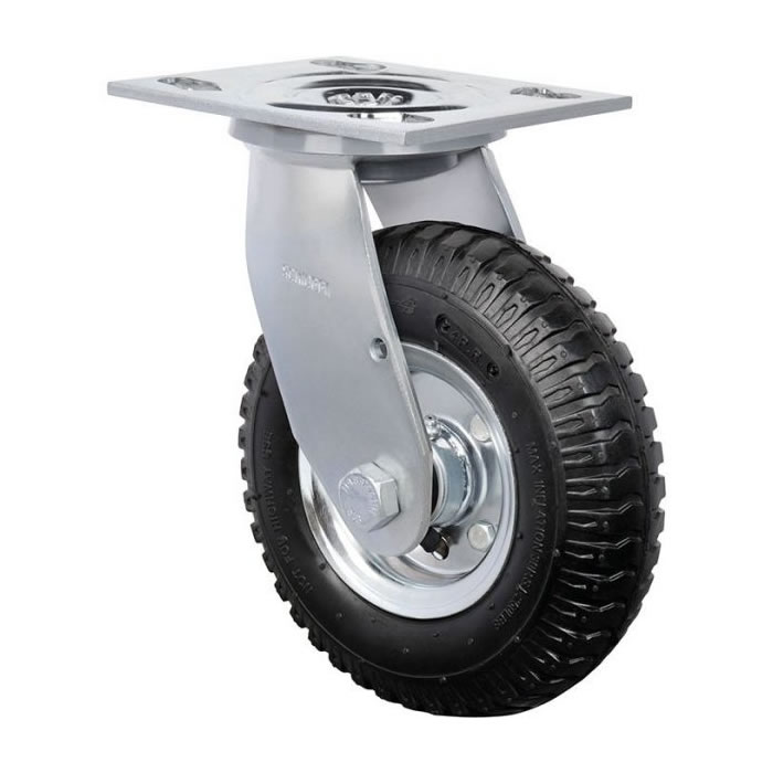 Fabricadas com pneu e câmara de ar, com núcleo em chapas de aço carbono estampado e acabamento zincado. Indicadas para aplicações em pisos irregulares onde é necessário facilidade de movimentação e amortecimento dos impactos e vibrações. Proporcionam fácil manutenção e seus componentes podem ser fornecidos separadamente. A velocidade de trabalho indicada é até 4km/h.