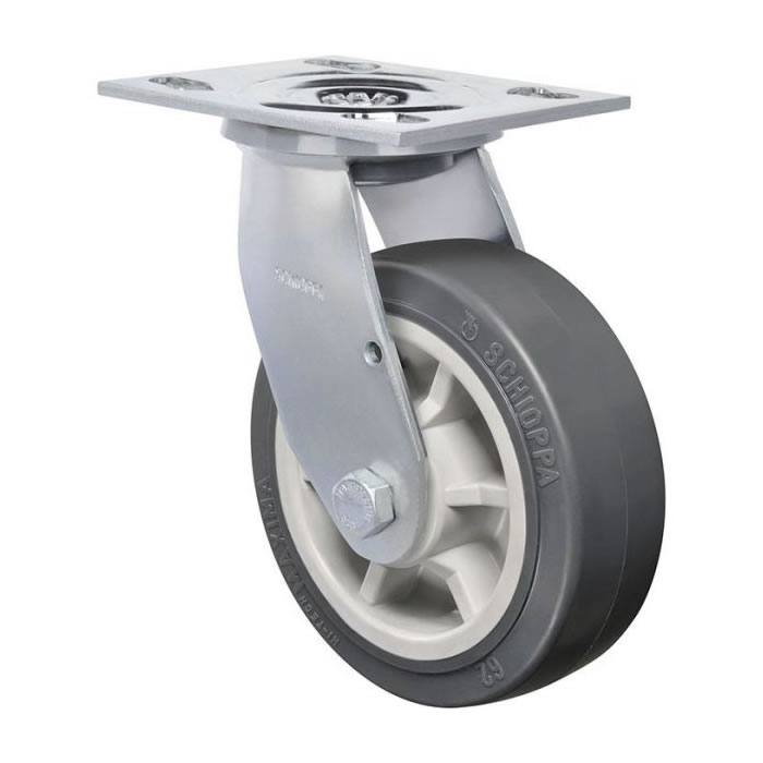 Produzidas com revestimento em borracha termoplástica elástica e núcleo em polipropileno copolímero recicláveis. Apresentam excelente proteção ao piso, rodagem macia e silenciosa, facilidade para movimentação e manobras, resistem a impactos, possuem baixa deformação sob carga e excelente resistência a abrasão. Possuem boa resistência a intempéries e a agentes químicos como sais e graxas. A velocidade de trabalho indicada é até 4km/h.