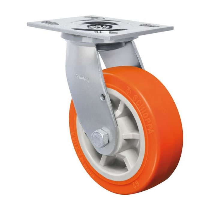 Produzidas com revestimento em poliuretano termoplástico elastollan e núcleo em polipropileno copolímero recicláveis. Ideais para quem procura excelente capacidade de carga alinhada a uma ótima proteção do piso com baixo ruído no deslocamento, proporcionam excelente resistência a abrasão e impactos. Resistentes a graxas, óleos minerais e alguns ácidos. A velocidade de trabalho indicada é até 4 km/h.
