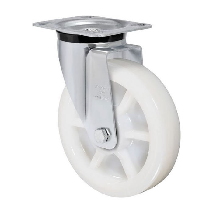 Produzidas com revestimento e núcleo em nylon poliamida 6.0 de alta qualidade. São leves e possuem ótima resistência mecânica, rodam com muita facilidade exigindo menor esforço para manobras e movimentação. Ideais para aplicações em ambientes úmidos, são resistente as graxas, óleos, sais e alguns tipos de ácidos. Fabricadas com material reciclável. A velocidade de trabalho indicada é até 4 km/h.