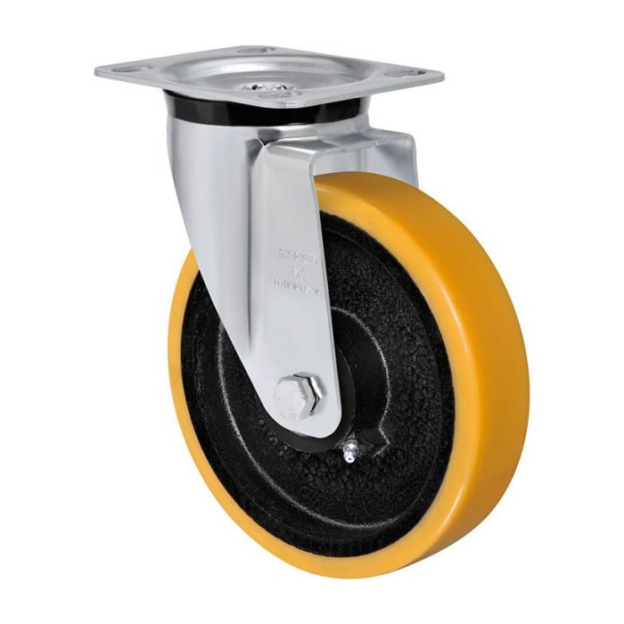 Produzidas com revestimento em poliuretano moldado e núcleo em ferro fundido cinzento. Ideais para aplicações nos mais diversos tipos de superfícies e ambientes. Suportam altas cargas, protegem o piso, necessitam de menor esforço para movimentação, produzem baixo nível de ruídos no deslocamento e têm excelente durabilidade. Possuem excelente resistência a abrasão, impactos, intempéries e produtos químicos como graxas, óleos, sais e solventes. Podem ser utilizadas a uma velocidade de até 4km/h.